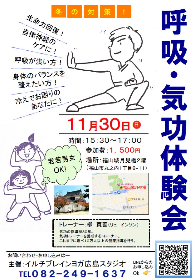 問合せ電話:082-249-1637(イルチブレインヨガ 広島スタジオ)